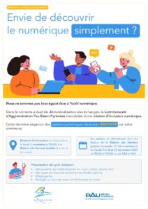 La direction du numérique à l’agglo propose une nouvelle session d’ateliers numériques à la maison des services publics à compter de novembre 2025.